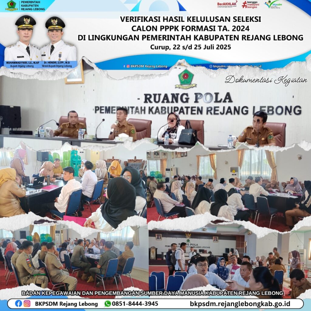 Rejang Lebong — Proses verifikasi hasil kelulusan seleksi calon Pegawai Pemerintah dengan Perjanjian Kerja (PPPK) formasi Tahun Anggaran 2024 di lingkungan Pemerintah Kabupaten Rejang Lebong memasuki hari kedua, Selasa (23/7/2025).