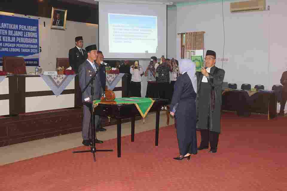 Pelantikan ini dirangkaikan dengan penandatanganan kontrak kerja perubahan di lingkungan Pemerintah Kabupaten Rejang Lebong, yang turut disaksikan oleh Bupati Rejang Lebong H.M. Fikri. SE.,M.AP, Wakil Bupati DR. Hendri, S.STP., M.Si dan Ketua DPRD Juliansyah Yayan.