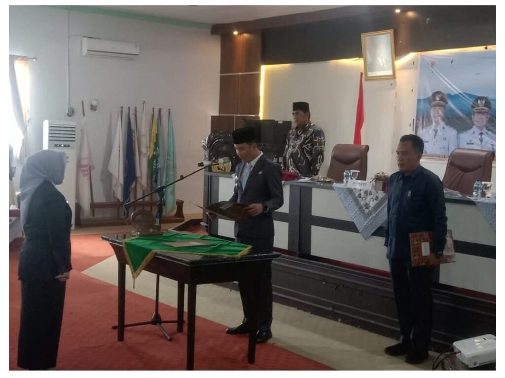 Rejang Lebong – Rabu 08/10/2025 Pemerintah Kabupaten Rejang Lebong resmi melantik Elva Mardiana, S.IP., M.Si sebagai Penjabat Sekretaris Daerah (Sekda) pada Rabu, 8 Oktober 2025. Prosesi pelantikan dan pengambilan sumpah/janji jabatan berlangsung khidmat di Ruang Pola Kantor Bupati Rejang Lebong, dipimpin langsung oleh Bupati H.M. Fikri. SE.,M.AP. Elva Mardiana sebelumnya menjabat sebagai Asisten Administrasi Umum. Ia ditunjuk untuk mengisi kekosongan jabatan Sekda terhitung sejak 26 September 2025, menyusul langkah strategis pemerintah daerah dalam menjaga keberlangsungan roda birokrasi.